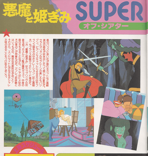 Akimi Yoshida: 私は、アニメについて、んにも知らないのです。だから、今回のアニメ化について何か要望を”といわれても……。 ただ自分のキャラが動いたらどんなだろう。そのことを、一度体験してみた!!!!” と思っているわけですから……。 それのかわりといってはなんですけれど、最近見たアニメについて、ちょっと感想などを……。(ホントは、AM編集部が強引に感想を聞かせていただいたのです。ゴメンナサイ) 自主上映会で「ホルスの大冒険」を見ました。この作品は小学5、6年生ごろ、父に連れていってもらい、ひどくおもしろかった記憶があって、また見にいったわけ。で、感想はというと、やっぱり”おもしろかった!!” とくに、背景の色づかいがきれいだったわ。淡い中間色でね・・・・・それに”ヒルダ〟が印象的でした。アニメのキャラというと、マルとサンカクというイメージが私の場合強いのですけれど、ヒルダは”人間に近いリアルな冷たい美人”というめずらしいタイプで、よかったわ。それから、全体的にも動きが人間っぽくって――これ、よく動いていたということなのかしらとにかく、おもしろかったわ。