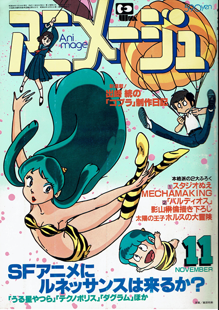 昭和43年9月から「週刊少年サン デー」に連載され、56年9月末現在 7冊の単行本も出版されている『う る星やつら』。すでに単行本の発行部 数も200万部にせまる勢い。さら に昭和56年度小学館漫画賞受賞とい うおまけつきー。 これほどの原作だけあってアニメ 化の話もいままでにも再々あったよ うだ。その『うる星やつら』がつい に「スタジオぴえろ」の手によって アニメ化されるということで、アニ メ界・テレビ界の注目を集めている。 原作者の高橋留美子さんは、東京 女子大学史学課卒業の24歳の新進マ ンガ家。彼女は、小学館漫画賞の受 賞理由にもあげられているとおり 『ナンセンスについての秀抜な感覚 と、思春期の少年少女たちの心理 の機微にすばらしい描写力』を持っ ていると定評のある作家でもある。 彼女といちばん密に接している「週 刊少年サンデー」編集部 『うる星や つら』担当の大島誠さんは、この作 品の魅力をつぎのように語る。 「テンポのよさと会話のユニークさ がこの作品の魅力 しょうね。キャ ラとキャラのリア クション(ひとつ のセリフ・動作に対 する相手キャラの反 応)の中に、彼女は独特なものを持 っています。そこが彼女の才能でし ょうね。ですから、アニメ化にあた っても、この会話のテンポとキャラ の持つテンポはぜったいにくずして ほしくないと思います」 さて、アニメの『うる星やつら』 んが、いったいどういう作品になる のか。プロデューサーの布川ゆうじ さんが説明してくれた。 「小学生から大学生ま で、幅広いファンを持 つ原作ですが、アニメ ではもう少し小さな子 どもたちにもなじみや すいようにアレンジし てあります。ですから かわいらしいサブキャ ラのテンちゃんなども 原作よりずっと早い回 に登場させるつもりで す」