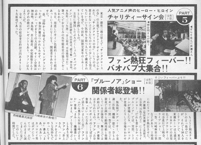 Yumi Nakatani: ひとつひと つのキャラクターがとても練れて いたので、役者としては「おいし い」役ばかりだったのに、終わっ ちゃうなんて、残念です。べつに すごいエピソードはなかったけれ ど忘れもの魔”の私のこと、例 によって整音スタジオにはいろい ろと置き忘れてきては取りにもど って……。 新宿駅からけっこうある のよネ。あせってると。
