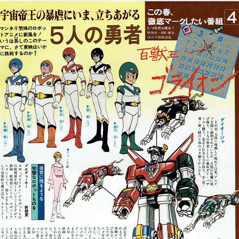 pg. 57-62: The Swiss Family Robinson: Flone of the Mysterious Island, Robot King Daioja, Yattodetaman, Beast King GoLion, Ohayou! Spank, Belle and Sebastian