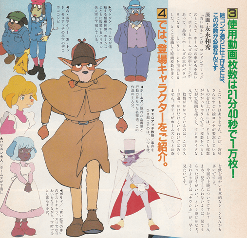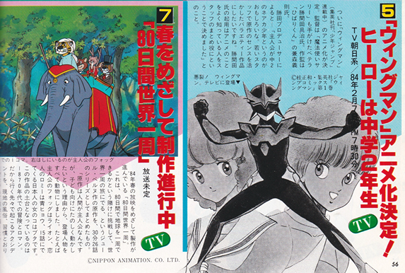 pg. 56-57: Animage Radar – Okawari Boy, Wingman, Katri, Girl of the Meadows, Ruy, the Little Cid, Around the World with Willy Fog, Nine 2, Lensman, Kakkun Cafe