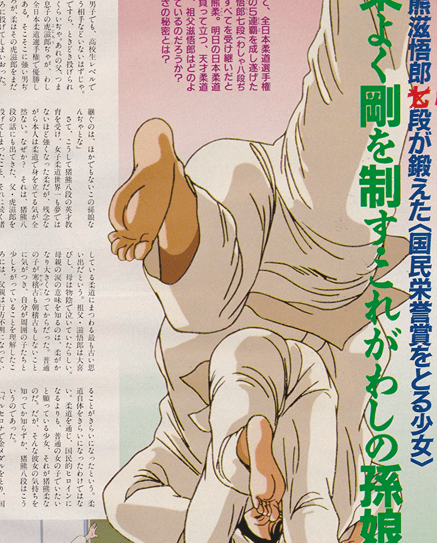 かつて、全日本柔道選手権驚異の5連覇を成し遂げた猪熊滋悟郎七段(わしゃ八段ぢゃ)のすべてを受け継いだという猪熊柔。明日の日本柔道界を背負って立つ、天才柔道少女を、祖父滋悟郎はどのようにみているのだろうか?その強さの秘密とは?