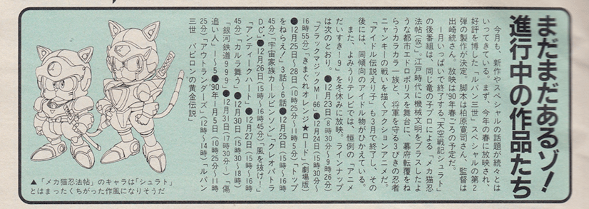 pg. 74-75: Chibi Maruko-chan, Yuusha Exkaiser, Teki wa Kaizoku: Neko-tachi no Kyouen, Nadia: The Secret of Blue Water