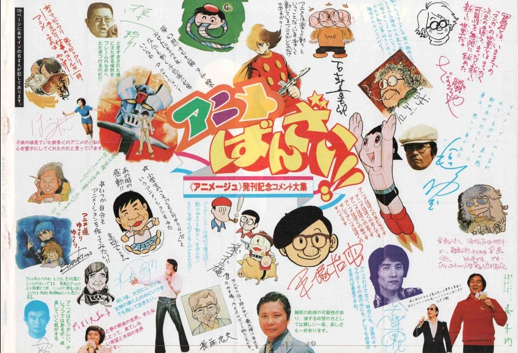 Animage’s form of episode listings that still uses the same name to this day. These were pretty expanded as one would think for the first issue and eventually turned into text only with a small screencap and then much later text only to fit so many series’. Each series included a brief word/short interview from someone involved with the series (sometimes more than one in various instances), those names will be in parenthesis next to their respective series.