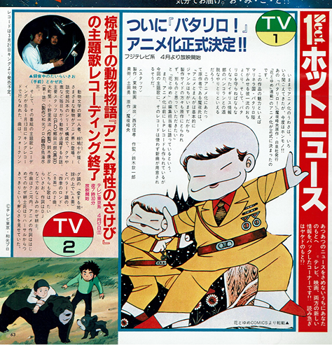 pg. 63-64: Patalliro!, Anime Yasei no Sakebi, Game Center Arashi, Kagaku Kyuujo-tai TechnoVoyager, Two Down Full Base