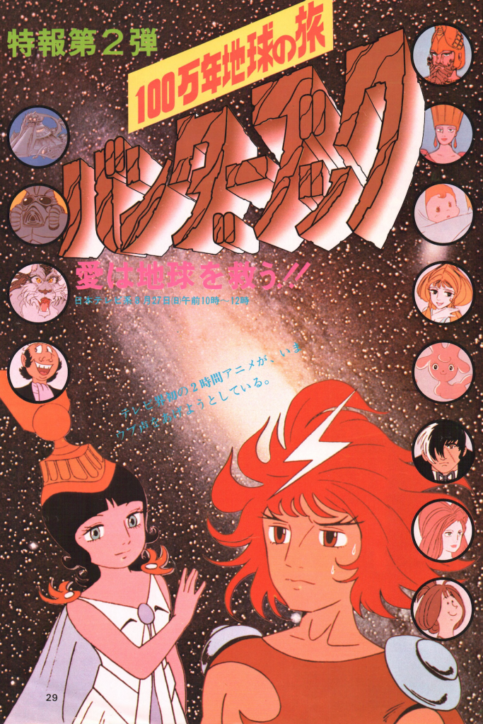 「話は、バンダーが親を殺した犯人をつきとめ、かたきをうつという話になっていますが、そのなかにかくされた人間の欲望と自然環境の破壊の恐ろしさ。そして人間が目ざめれば、いまからでも地球を美しくするのにまにあうということ。それを訴えたいのです」このへんは「ブラックジャック」ほか、手塚作品にみられる一貫した共通テーマである。全身にバイタリティーをみなぎらせ、今夜も若いスタッフたちにまじり陣頭指揮を取る手塚先生である。その姿を見て、作画監督の坂口尚さんは「手塚先生の作品づくりにかけるエネルギーには負けますね。あの睡眠時間では、ぼくなどとうにつ「ふれていますよ」と語った。午前4時。空はそろそろ明けはじめた。作品のイメージを左右する音楽を担当される大野雄二先生をおたずねして、お話をおうかがいしてみた。