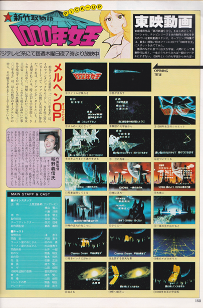 君たちは星占いに興味があ るかな? 新聞の世論調査に よると、若者の70%は占いを楽しん でいるそうだ。「占いなんか興味が ない」と言っている君、君はもう少 数派なんだぞ! ところで、潘恵子といえば、声優 と星占いの〝二足のわらじ”をはい ていることは君も知っているはずだ。 その彼女が1000年女王雪野弥生役 をやっていると聞けば、占いに興味 がある君も、ない君も何やらミステ リアスな臭いが漂ってくるというも そこで直撃インタビュー 「はじめ、 1000年女 王の主役 に決まっ たとき、 こわい”と思 いました。声優の仕事を 始めてまだ三年ですし、 それに・・・・・・・」 確かに、演技力を必要とするこの世界 では、三年というキャリアはまだまだ少 ない。しかし、彼女が“こわい”と言う とき、何か占星術師としての直感が秘め られているように思える。 「私はとても悪い星なんですよ、魚座な んですけど……。ところで、原作者の松 本零士先生は水瓶座で、私とは相性がい いんです。だって、魚は水瓶の中で泳い でいれば大丈夫でしょう? 私は松本先 生に任せておけばいいんです。でも、先 生から主役をって言われるまで、先生に は一度しかお会いしてないんですよ」 なるほど、悪い星の彼女に、彼女を守 る星回りの松本先生の直接のご指名。や はり、潘恵子の1000年女王雪野 弥生役は、不思議な星の運行に支 配された〝運命的な出会 い”だったのだ。 とこ ろで、彼女 はこの“運命的 な出会い”について、 「私は悪い星なりに努力することが必要 だと思っています。だから、松本先生と の出会いも1000年女王の主役も、私に課 せられた一つの試練じゃないかと考えて います」 と言う。そう言う時の彼女のまなざし は、同じように運命の糸にあやつられる 1000年女王雪野弥生そのものだったぞ そういえば、最近、潘恵子が雪野弥生 によく似てきたという声を耳にする。 「ええ、時々そう言われるんですよ。不 思議ですね。でも、私には雪野弥生の心 の中の葛藤が良くわかるんですよ」 何だ、何だ!それでは、1000年女王 雪野弥生潘恵子になってしまうでは ないか!これはやはりミステリアスだ。