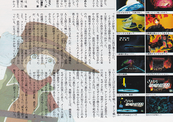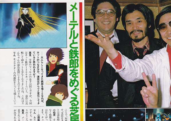 AN. そうですね。しかし今回のメーテ ルは、前作と比較してみると大変丸味 をおびて円熟さが出ているように思わ れるのです。鉄郎も成長していること だし少し期待したんですが、メーテル の線の変化は、小松原さんの2年とい う時間の流れによるものでしょうか?