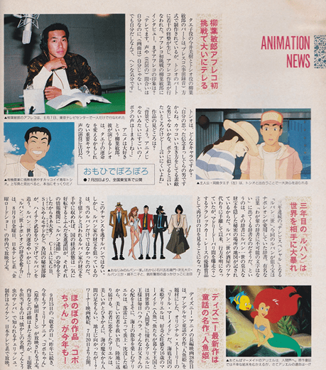 タエ子役の今井美樹とトシオ役の柳葉敏郎のパートは、プレスコ(事前録音)方式で制作されているが、トシオのパートに若干の修整が生じ、アフレコ作業が行なわれた。アフレコ初挑戦の柳葉敏郎にインタビュー。まずアフレコの印象は?「テレてます。声や(芸居の間合いは自分なのに、(画面は)自分じゃないし、でも自分だしなんて、ヘンな気分です」トシオは、どんなキャラですか?「自分の思った信念まっしぐらの男ですからね。カッコいい生き方をしてる素敵な男じゃないかな。ボクに似てると言いたいところだけど・・・・・・言いにくいよね」作品の見どころは?「背景でしょう。アニメじゃないみたいにすごいの!ボクの声は・・・まぁ・・・ね・・・」アニメは大好きという柳葉敏郎。彼が演じるトシオは、タエ子の運命を変えるかもしれない重要キャラ。声の演技に注目だ。