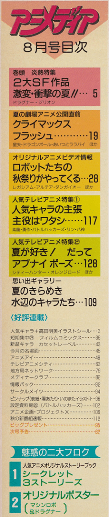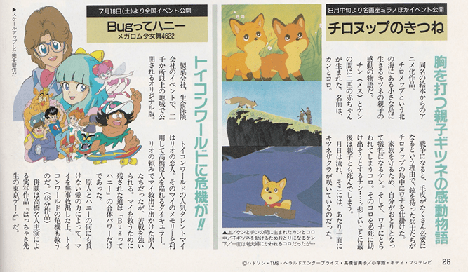 pg. 26-27: Urusei Yatsura, Bug tte Honey, The Foxes of Chironup Island, Mobile Suit Gundam: Char’s Counterattack