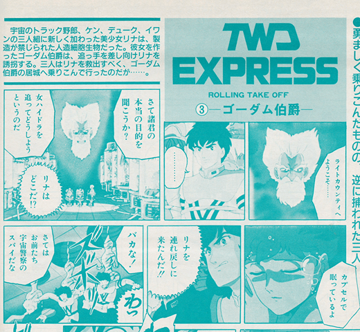 ●「コミックNORA」の人気漫画、聖悠紀の『TWD EXPRESS ローリングテイクオフ』と長谷川裕一の『マップス 伝説のさまよえる星人たち』の二作品が、7月21日のOAVの発売に先立ち劇場公開中だ。場所は、東京・新宿ピカデリー2と上野セントラルの2館で、7月4日から2週間の予定だ。この2館は、新規オープンの劇場で、今後も良質の小作品などを中心に上映するニュータイプの映画館。