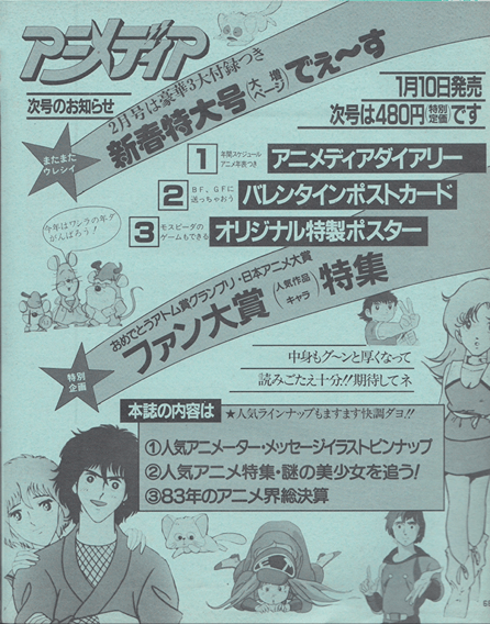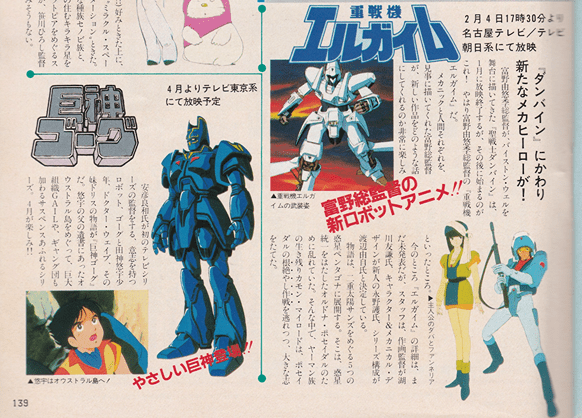 pg. 138-139: Nine 2, Captain Tsubasa, Doraemon/Hattori-kun/Perman Special, Film Rebroadcasts, Mrs. Pepper Pot , Heavy Metal L-Gaim, Okawari-Boy Starzan S, Giant Gorg
