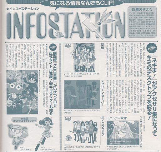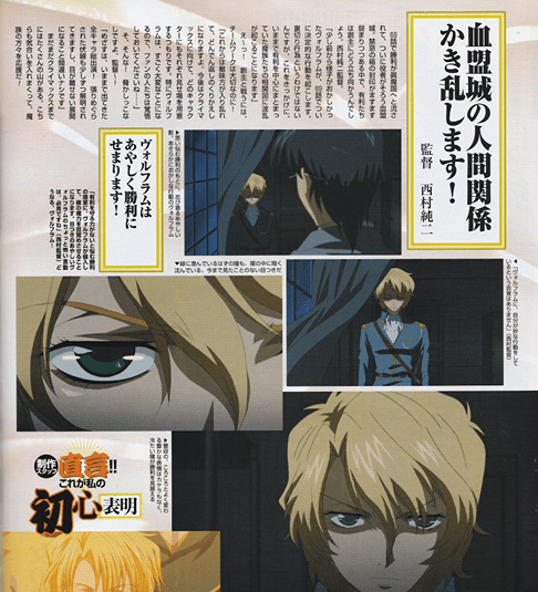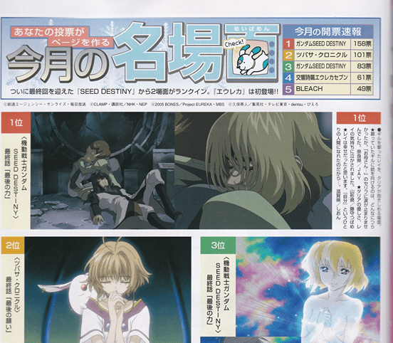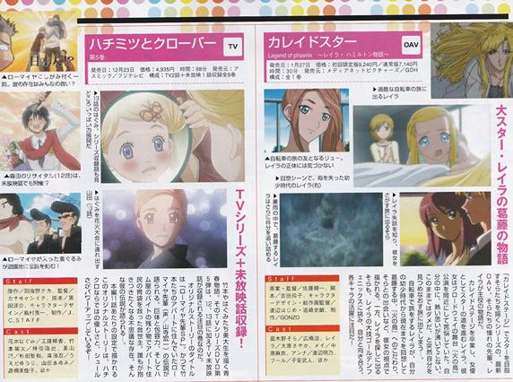 pg. 36-37: Binchō-tan, Fate/Stay Night, Hanbun no Tsuki ga Noboru Sora, Kagi Hime Monogatari: Eikyuu Alice Rondo, Rakugo Tennyo Oyui , Ayakashi: Japanese Classic Horror, Major, Lemon Angel Project, Tactical Roar
