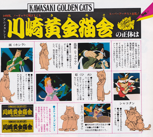 A: 「ダッシュ勝平ベストヒット曲集」というLPがコロムビアより発売されています(レコード番号:CZ7156)。ファンクラブについては「タツノコファンクラブ」というものがあり、勝平に限らず、タツノコプロ制作のすべてのアニメ番組に共通しています。入会希望者は、はがきに「入会案内書希望」と書いて、〒185 国分寺市南町3-22-12「タツノコファンクラブ事務局」宛に送ってください。入会金は300円、月会費000円(※金額不明)で、半年分前納制です。