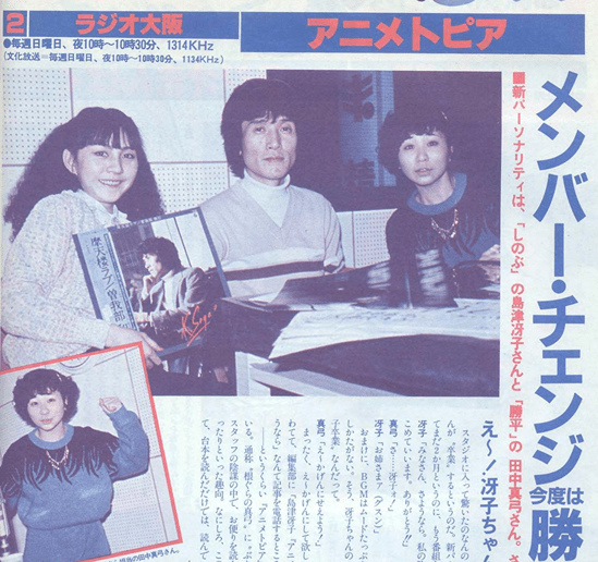2: ラジオ大阪アニメトピア 「おばん!」「いけず娘!!」 とやりあ っていた吉田麻上コンビにかわり、 新パーソナリティ誕生。 島津・田中 たりの新「アニメトピア」 レポート。
