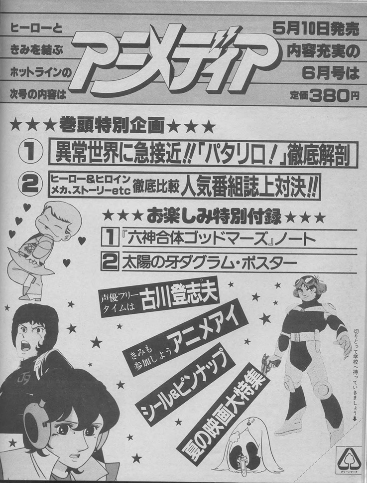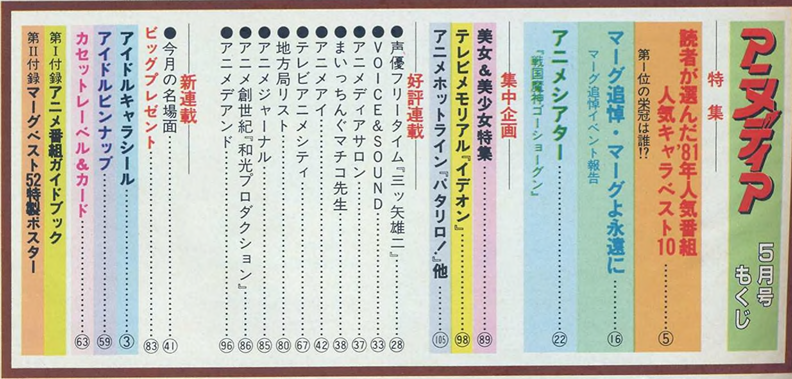 pg. 8-9: Fang of the Sun Dougram, Urusei Yatsura, God Mars, Dr. Slump Arale-chan