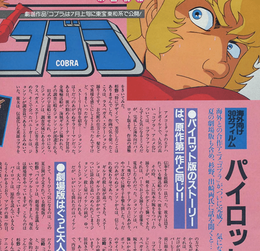 パイロット版のストーリーは、原作第一作と同じ!! アメコミタッチのSFハ ードボイルドで、人気の高 い 「コブラ」。アニメ化に ついては、コブラファンな らずとも気になるところだ 完成した海外向けパイ ロット版より、作品の感触 をきいてみた。