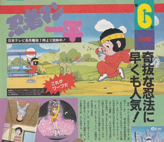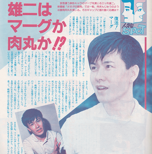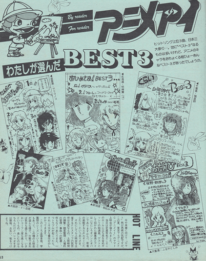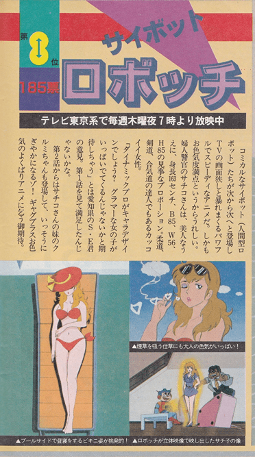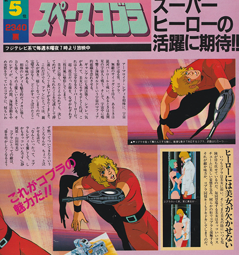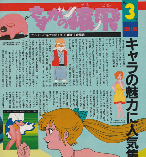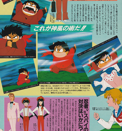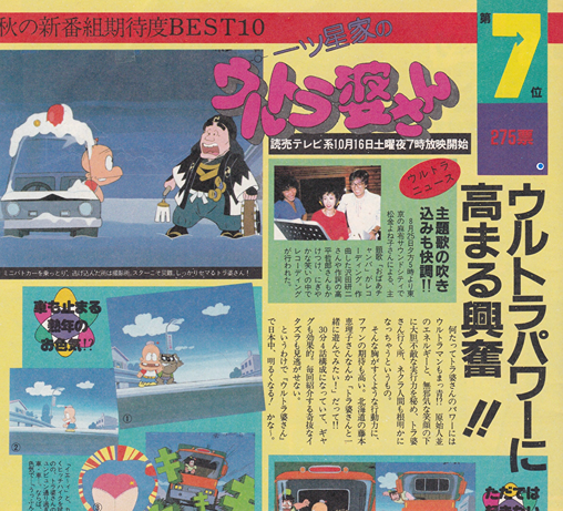 Yuyama.「やはり可愛いこと。また男の子の アイドルにできるようなアニメキャラが なかったんでしょうね。UFOが出たり ロボットものになったりと、とにかく毎 回違ったタイプのモモが登場しますから、 今後も続々とアイドルが生まれますよ」 そういえば普通の18歳の女の子になっ 話もあった(考えてみるとこれはスゴ イことなんだよね)。これからますますオ モシロクなりそうなモモからは、絶対に 目が離せないぞ!!