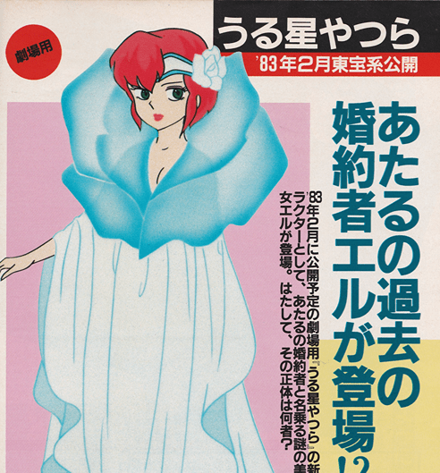 ’83年2月に公開予定の劇場用『うる星やつら』の新キャ ラクターとして、あたるの婚約者と名乗る謎の美少 女エルが登場。はたして、その正体は何者?