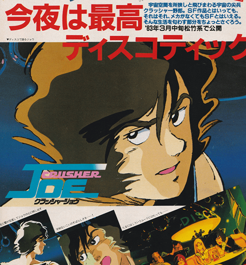 ジョウの活躍する西暦2160年代と もなると、人類は太陽系のみならずワー プ航法を利用して銀河系のいたるところ に進出をしていた。 ワープ航法の開発がもたらした恩恵 は、恒星間飛行が可能になったというこ とだけでなく、人類の宇宙進出の手助け をなりわいとする人々、クラッシャーを 生みだしたことである。 宇宙に進出する尖兵として、遊星や浮 遊する宇宙塵塊を破壊し、宇宙航路を確 立したり、宇宙船の救助や護衛、惑星探 査などの多くの仕事を手がけるのがクラ ッシャーである。それは金で仕事を請け 負うがゆえに、ならず者の集団と世間か ら見られがちであるが、法にふれること は決してせぬという信念のもとに働く宇 宙のエリートである。 彼らは専用の宇宙船や武器、 メカニッ ク類を持ち、それをさも自分の体の一部 であるかのように上手に使いこなす。こ のようなクラッシャーの存在があったれ ばこそ、宇宙のかなたに数多くの人類が 進出できたのである。 しかしそれは、とりも直さずこの美し く輝く宇宙を、地球のようにゴミのちら かる世俗的なものにしてしまったのであ る。西暦21 11年のワー 航法完成以 来わずか半世 紀で植民惑星 の数は800 0をかぞえ、 銀河連合 づくっていたー。 原作でも見られるように『クラッシャ ージョウ』の宇宙は、いかにも人間臭く、 地球上を走りまわっているかのようであ る。それは彼らがつねに地球上の大気と 同等の惑星上で活躍するからである。草 があり、木があり大気が存在する。 ヘル メットをつけて行動する必要のない世界 である。この設定は、宇宙を舞台に描く 作品の世界を非常に広げてくれた。人間 の血と汗と匂いをしみこませてくれたの だ。『クラッシャージョウ』もSF作品 だ、スペオペだといわれるがどちらかと いうとこの人間臭さ、生活臭さがひとつ のおもしろさとなっている。 手アカに汚れたミネルバのコクピット やパネル。ホコリの舞う惑星の都市街。 どこへいっても地球のどこかに似ている 世界である。 『ジョウ』を語るには主人公たちの、い かにも現代的な青年の感覚のやりとりの 妙味と、生活感を忘れてはならないだろ う。このあたりをスタッフはどうとらえ ているのだろうか?!?!?! 「原作の感じるままを絵にして、そこか アニメ向きに作品をふくらませていま す。宇宙にしても、人間が多く入り込ん でしまっている汚れた宇宙ですね。遠く から見ると天体、星座は大変美しく見え ますね。しかし身近で見るとけっしてき れいではありません。それと同じように 舞台となる宇 でも、人間 関係が色々渦 まく世界であ り、そういう ところだから こそ、ジョウ 達の請ける仕 事が生まれる 場となるわけ ですね」 と、演出の鹿島典夫氏。 人間の集まるところつねにケンカあ り、娯楽場ありと相場は決まっている。 『スターウォーズ』ではないが、数多くの 宇宙人が酒場で酒を飲みかわしている雰 囲気のあの楽しさ。同じようなことが『ジ ョウ』でもいえそうだ。 仕事がなく暇をもてあまし、息抜きに ディスコに現われたジョウ達。アルフィ ンにとっては、ジョウとふたりきりであ るなら、さらに楽しかったであろう。酒 らしきものを口にし踊るアルフィン。リ ッキーとタロスはふたりにあてられっぱ なしで、中に割って入るのもばかばかし いと。アルフィンのみ「きゅうい〜ん」 の心境。しかしこの楽しみもすぐ仕事の 依頼で打ち切りに……。 というような話になりそうなディスコ シーンであるが、画面ではきっと、もっ と多くの魅惑的なギャルがふたりのまわ りで踊っていることだろう。右ページ下 の写真に見られるように、アルコールが 入ったジョウの口やかましそうな表情に、 ひとりジュースを飲む(?)大男のタロス。 と、随所に遊びを入れるのが好きなスタ ッフゆえに、 ディスコシ ーンを、ぜ ひ注目して みたい。
