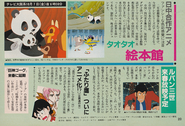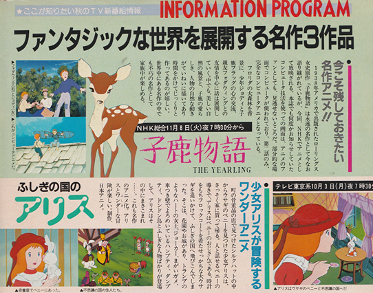pg. 20: The Yearling, Alice in Wonderland, Tao Tao, Futari Daka, Lupin the 3rd