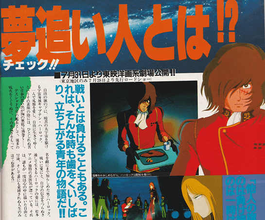 「わが青春のアルカディア」の映 画作りを通して、ハーロックの魅 力と映画化のプロセスを探る今回のBIG特集はいかがだったろう か? 感想を待っているよ!!
