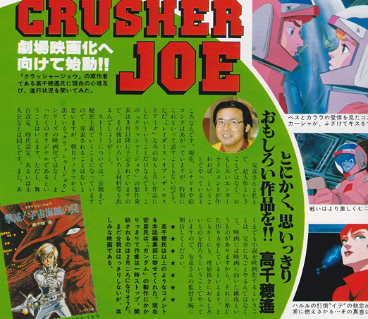 現在、アニメファンの関心を集めて いる「クラッシャージョウ」は、「ガンダ ム」「イデオン」とは一味違った冒険を している試行的作品だと言われる。冒 険、試行とは何なのか? 安彦さんに 直撃インタビュー!!