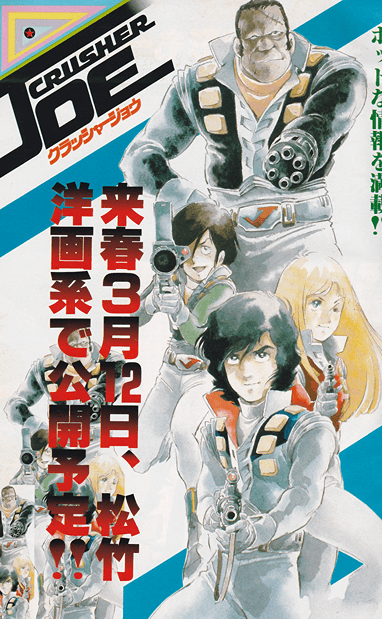 いろいろ変遷もありましたが、今 回この「クラッシャージョウ」を松 竹・東急系の洋画劇場で来年3月に 上映することに決定いたしました。 我々としては、3月にいろいろの アニメ映画がでますが、この作品に ついては非常に自 信をもっています。 それは、SFファ ンに大変人気のあ 高千穂先生の原 作であり、そのイ ラストを描いていらっしゃる安彦先 生が監督をなさる。これは、現代の アニメファンにとって非常に関心の 高い作品だと思うからです。