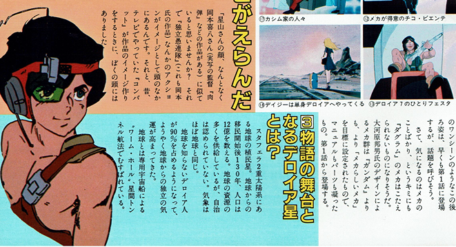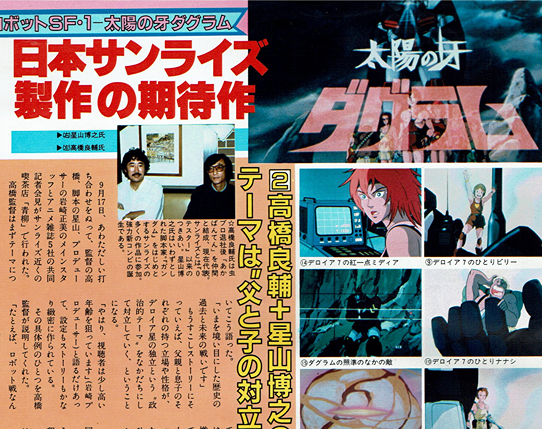 前号で疑問符をつけた第1話の暗 示するものや、今進行している物語 の今後、またこれからの見どころな ど 『太陽の牙ダグラム』の内容を、 高橋監督にきいてみた。