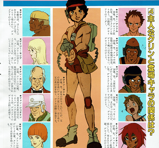 第1話は予告編的なものに なり、ストーリーは第2話か らはじまる。 クリンの父、ドナン・カシ ムがいなくなる。独立を要求 するデロイア人にとらわれた らしい。クリンは父を追って デロイア星へと旅立つ。 しかし、父の失踪は、彼自 身がデロイア独立派を弾圧す るために仕組んだ計略だった のだ! デロイア星に到着 したクリンは、その弾圧の あまりのむごさに、しだいに 独立派へと心を傾けていき、 ついにゲリラ組織に入る。そ れが“デロイア7″だ。 クリンはその過程で、実は 父がこの弾圧の黒幕だったこ とを知る。父と子のおたがい の正義を主張する闘いがはじまる。 そして、クリンを追って、 デイジーもデロイアへ……。