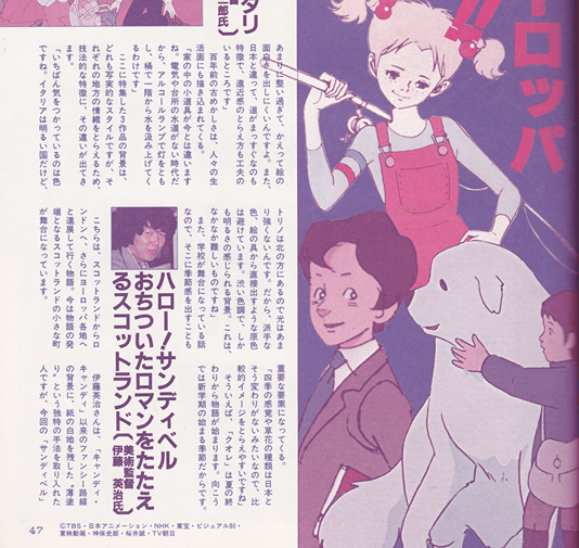 伊藤英治さんは、「キャンディ・キャンディ」以来のファンシー路線の背景に、紙の白地を残した“薄塗り”という独特の手法を取り入れた人ですが、今回の「サンディベル」では通常の“厚塗り”で表現するそうです。「内容はオリジナルですが、名作の趣きがあり、ラブロマンス色も濃いので、落ち着いた雰囲気のオーソドックスな写実的表現にしました」とのこと。