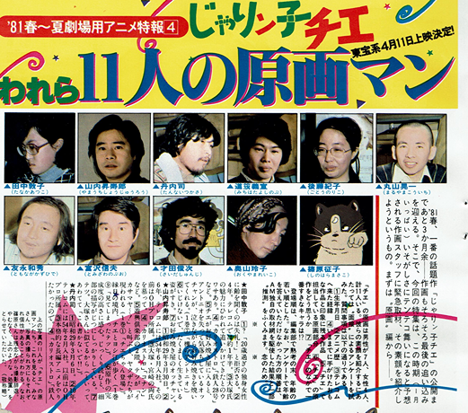 「チエちゃん”が、いよいよ 動きだす。公開を前に、東京・ 高円寺にあるテレコムでは、 連日連夜、急ピッチの作業。 でも、チエちゃん”って、 どんなふうに「動く」んだろう? 一口に「動く」といっても、 アニメの製作過程のどこに、 そのポイントがあるのか。今 回は「動画」を中心にして、 それを考えてみた。