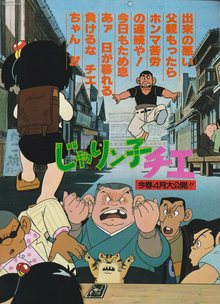 「じゃりんこチエ」のアニメ化の企 っていうのは、もうだいぶ前から あったんです。今年の5月頃からプ ランが具体化しはじめ、7月に正式 にスタートしました。 とにかく、はるき悦巳さんの原作 が、絵もストーリィも素晴しく味の あるものでしょ? あのタッチをそ のまま生かせたら、もう大成功だと 思っています。ストーリィテラーと してもバツグンの才能のある人だと 思いますよ。まんがからそのまま絵 コンテが起こせるくらいにね。 今回、何よりもユニークなのは、 声を、東京の声優さんではなく、関 西の役者さんにアテてもらおうとい うプランがあることです。舞台が大 阪の下町ですし、あの、えも言われ ぬ情緒(笑)を出すためには、やっ ぱり関西の人のナマの関西弁が欲し いんですよね。テツなんかの迫力も だいぶちがってくるんじゃないかな。 サブキャラからチョイ役まで、関西 の一流の役者さんやコメディアンを 使い、彼らの芸を存分に発揮しても らうのが夢なんですが、さて、どう なりますか……。 作監は大塚康生・小田部羊一の両 氏。シナリオは、「サザエさん」や 「ギャートルズ」などで、ホームド ラマの暖かさの演出には定評のある 城山昇さんが書き上げました。 子供 向けなんてことを全然意識せず、人 の心のひだにしみるような、楽しい ほのぼのとした作品にしたいと、み んなはりきっています。大塚さんら スタッフは、9月25日から埼玉県の 山奥に山ごもり。今ごろは設定資料 も着々と仕上がっていることと思い ます。たくさんのおみやげを持って 彼らが降りて来るのが楽しみですね。 みなさんもどうぞご期待ください!