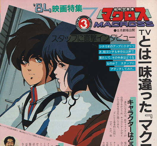 映画のストーリーを予想するには、テレビシリーズをふり返るのが一番。そこでスタッフに、お気に入りのシーンや名場面と思えるシーンの数々を、上げてもらったー。もっとも多かったのが第4話。マクロス内で迷子になった輝とミンメイは、1日間2人きりですごす。そして2人だけの結婚式。石黒昇氏によると「美樹本氏の力量が良く出ているシーンだから」とのこと。また、当の美樹本晴彦氏のお気に入りの理由は「テントの中での、わずかな明りをはさんでの二人のたどたどしい会話が、何ともいえずに良かった」から。次に多かったのは第27話。ミンメイの歌に合わせての戦闘シーン。「私の彼はパイロット」を始めとする名曲が、戦闘のすごさを浮きぼりにした。河森正治氏は「やろうとしてできた総括的シーン」なのだと言う。この他には、「第35話の未沙の心理的描写が好きです」富田祐弘氏。「第11話の在存感が歩いているようなブリタイさんと、バルキリーのプロレスは最高」とは宮武一貴氏。などなど・・・・・・。全部で20余りのシーンを上げてくれた。中でも、井上明、岩田弘両氏は「自分の手がけた作品は全てお気に入り」という。さて、ミンメイが登場するシーンがなぜか多いスタッフのお気に入り。果たして大画面には、このお気に入りシーンが、どれだけ登場するのだろうか。