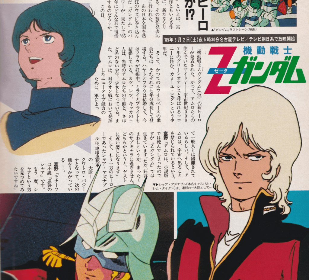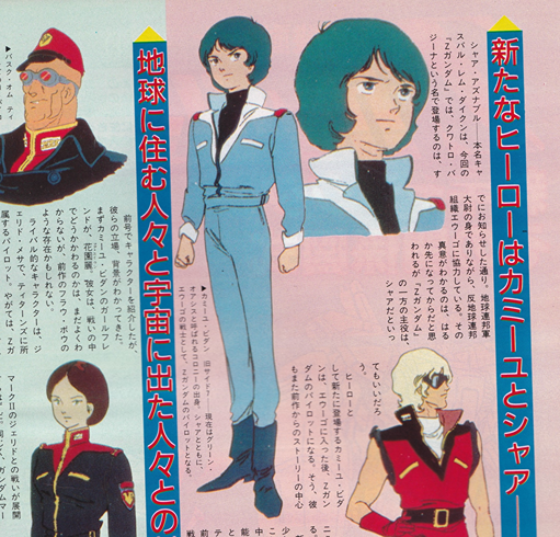 『エルガイム』が2月で終了、3月2日から『Zガンダム』(仮題)が登場する。製作も着々と進んでいる。今月は、新しく決定したキャラクターを大紹介!