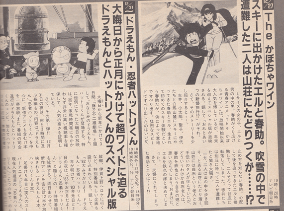 pg. 85-87: Anime Hot Liner (Noel’s Fantastic Trip, Santa Claus Is Comin’ to Town, Dr. Slump and Arale-chan: Hoyoyo, Great Round-the-World Race, Manga Aesop Monogatari, Ninja Hattori-kun: Nin Nin Furusato Daisakusen no Maki, Perman: Birdman ga Yatte Kita!!, Doraemon the Movie: Nobita and the Castle of the Undersea Devil, The Yearling)