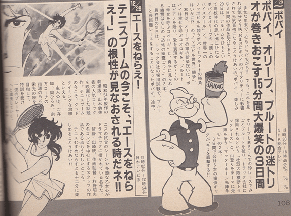 pg. 108: Popeye, The Kabocha Wine, Doraemon-Ninja Hattori-kun, Aim for the Ace!
