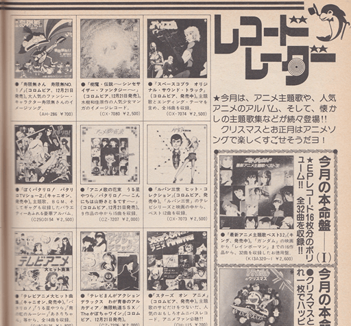 「宇宙戦艦ヤマト」が先がけとなって空前のアニメブームが起こり、社会的にもアニメ界の存在が改めて見直され、TV各局はアニメ番組をドル箱として番組枠が増やされ、1週間に30本以上の新作アニメが放映された。また、NHKは「未来少年コナン」で国産TVシリーズアニメの放映に踏み切った。作品ジャンルもますます多様化し、ロボットアニメからギャグアニメ名作アニメ、SFアニメ、少女向けのアニメ・・・・・・など、あらゆる作品が作られてそれぞれに人気を得た。TVアニメは全盛時代を迎えた…。