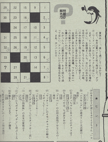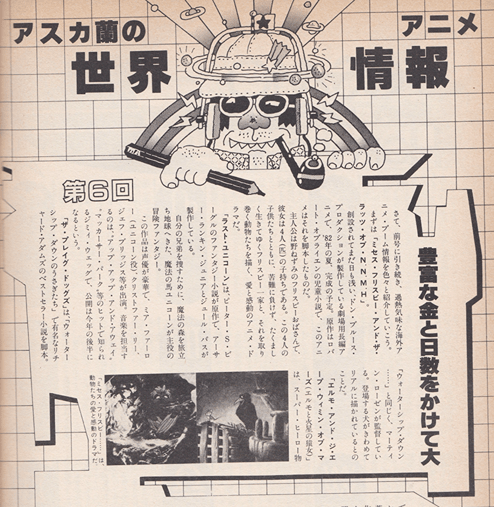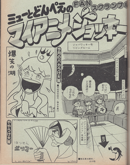 「みなしごハッチ」に出会うまで は、アニメは身近じゃなかった!!! 何といっても、アニメに入るきっか けとなったことといえば、「みなしごハ ッチ」を見た瞬間からですね。 もともとは、マンガが好きだったん ですよね。子供のころからマンガはよ く見たという記憶はありますね。でも、 ぼくの子供のころは、まだアニメもブ ームどころか、話題にもあまりのぼら ない時じゃなかったのかなあ。もっと もぼくの周辺だけだったのかもしれな いけれど。マンガが好きというのと、 アニメを見るってのは結びつかず、ア ニメは見ませんでした。ぼくの世代で、 よく子供のころ見たアニメ作品の筆頭 にあがるディズニーも、見ることは見 たけれど、そんなに印象に残らなかっ たようですね。ピタッとこなかったと いうか。 マンガでは「まぼろし探偵」「月光仮 「面」が好きな作品で、今でも、なんとな 空間がスカッと空いているあの独特 の雰囲気が、なんとなくぼくの脳裏に こびりついてましてね。必要に迫られ てイメージを考える度に、今でも! つの世界が浮かぶんだけど、どうもこ の「まぼろし探偵」「月光仮面」の空間 が湧きおこってくるんだと思えますね。 高校卒業後、2年ばかり設計関係の サラリーマン生活をしました。そのこ ろから、自分なりに本気になってマン ガを描きためていましてね。それでも、 マンガとアニメはまだ意識の中で重な らなかったですね。 そして、まあ偶然というか、何の気 なしに「みなしごハッチ」を見たわけ で、10年ぐらい前にあたりますよね。 それで、その画面にがぜん引き付けら れてしまったんです。それであんな作 品を描いてみたいなって思って、タツ ノコの笹川さんに手紙を出しました。 それで、会いに行ってタツノコに 入ることになって、アニメの世界 に踏み込んだわけですね。 「まぼろし探偵」は今でも頭 の中にこびりついている作品 タツノコには6年半ぐらいいた のかな。現在はフリーです。もう フリーになって4年目になります ね。フリーになって劇場用の「銀 「河鉄道999」に関係して、りん たろうさん、そして、小松原一男さ んと一緒に仕事をした時は、ずい ぶんと勉強になりましたね。あの 時は蒸気機関車の車輪の動きを担 当しましてね。その車輪の動きを 理解するために、D5なんかの写 真を買ったり、見学にも行き、 カ月ぐらいかけたのかな。あの時 は、いろんなことを発見したころ ですね。 これからの希望を考えると、フ リーになりたてのころ、何人か集 まってグループを組んだんですけ れど、何となくうまくいかなくな って1年ぐらいで解散してしまい ましてね。今は家で仕事をしてい るけど、やっぱり仕事場が欲しい から、グループ活動をもう一度試 みたいと思ってます。 現在は「ゴールドライタン」 本 に仕事をしぼってます。いろいろ 数をかけるよりも1本にしぼった ほうが性に合ってるみたいですね。 アニメで一人のヒーロー物、人間 のね、ヒーロー物をやりたいと思 ってます。あとは、なるたけ時間 をあけて、すきな野球をやりたい ですね。