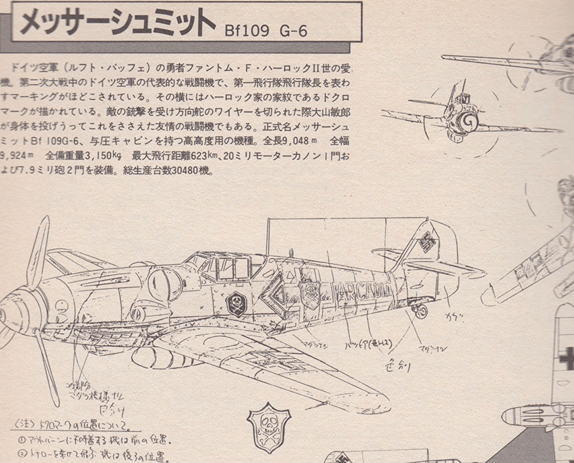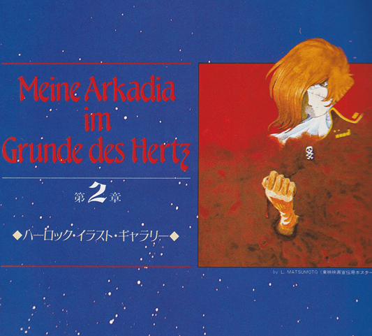 ファントム・F・ハーロックⅡ: 第2次世界大戦末期ドイツ軍の飛行機乗り。祖父の書いた「わが青春のアルカディア」と照準器レビC12Dはいかなる時でも手離さなかった。大山敏郎との出会いが彼の運命を左右させたのかもしれない。彼の愛機メッサーシュミットB109G-6の側面にかかれたドクロマークは、いかなる戦場の上空でも見られたのだろう。そして彼の目は、いつもレビC122Dであった。レビC12Dをたずさえ、スイス国境へ脱出するハーロックⅡと敏郎の間に芽生えた友情はますます強くなった。そして、友情のシルシであるレビC12Dと「わが青春のアルカディア」の本が、ハーロックとトチローに伝わっている。スターザット号との戦いで、トチローはレビC12Dを目として戦い抜いたのだ。今回3人のハーロック(Ⅰ、Ⅱ、宇宙海賊)の描きかえをいかにするかが、目玉になっており、小松原氏苦心の作である。