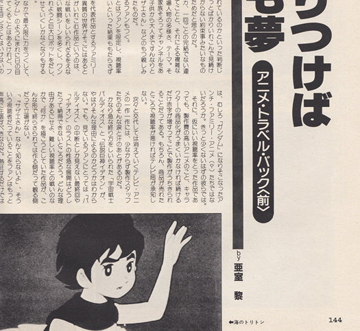 三浦雅子、と聞いてもご存知のな い人の方が多いだろう。それもその はず、できたてのホヤホヤの声優サ ンなのである。 今年1月12日に「タイムボカンシ リーズ、ヤットデタマン」に姫栗コ ヨミ役で、デビューしたばかりの、 81年第1号の新人である。 全くのしろうとが、どうやって声 優になれたのか、読者諸君も興味シ ンシンであろうと思って、今回登場 してもらうことにした。 ……といっても、ぼくの教え子。 日曜日のアルバイトの早くひけた日 に、ぼくのところへ寄ってもらった だけのこと。(こういう取材は楽で いい、いつもこうだとイイナァ・・・・・・) いつものつなぎのジーパンの上に、 赤いチェック模様のプルオーバーを ひっかけて、いかにもアルバイト学 生という姿でやってきた。どうみて も声優には見えないところが、初々 しくていい。 -アルバイト、今何やってんの? とぼく… 「はい、アイスクリームの売り子、 高田馬場駅横のビッグBOXで・・・。 そう、がんばってるね。辛くないーE.T. 「いいえ、とっても楽しいンです。 あの、売り子が楽しいってことじゃ なくて、養成所へ毎日通えるってこ とが……。毎日いろんなことが新し いことばかりでしょう。それをどん どん吸収できるってことが……。 そ れに私は、全くのズブシロ(素 人)で、何も知らずに入所したのに、 廻りの人たち上手な人ばっかりで、 スゴーク刺激受けちゃうし・・・・・・あ、 それから今年は先生のおかげで、念 願のアニメに出られるようになった し・・・・・・まだまだあるんです。あの… ・・・アルバイト、今までより昇給して 時給500円になったンです。 ーふうむー と思わずぼく。 この子は何でも楽しいのだ。毎日 毎日を明るく屈託なく、強く逞しく 生きている。 ぼくが始めて彼女と出会ったのが 一昨年の5月、あの時、この子はイ ケると直感したが、まさにズバリ当 った。ぼくの発掘した横沢啓子、高 木早苗と出会ったときと同じひらめ きを、あの時感じたものだ。 三浦雅子、昭和39年11月28日生れ。 大分県臼杵市、静かな城下町に生れ 育ち、県立臼杵高校を卒業、神戸西 の宮の夙川学院短大幼児保育科に進 学。本来なら幼稚園の先生になると ころであった。 だが、やはりアニメ育ちのアニメ ッ子、短大へ進んでも、寮生活では 楽しみといえばテレビのアニメを見 ることくらい。 学校の勉強とアニメをくらべたら、 どっちが楽しい? ってことになっ たら、大低の女の子は「アニメーッ !」とこたえるだろう。この子もご 多聞にもれず、そういうことになっ た。 アニメ番組はもちろんのこと、ア ニメ雑誌も毎号読んだ。ぼくの「声 優入門」も欠かさず読み(こが大 切なところなのデスゾ!)、声優志 望の意志を固めると、せっせとぼく のところへ手紙を書き送って寄越し た。 ぼくの通信教育(勝田話法研究所 習を受け始めた。短大2年の5月、 連休を利用して上京すると、俳優養 成所を見学し、ぼくを訪れた。 あの時が、君との最初の出会いだったねー 「はい。先生にお会いできて、ほん とうにラッキーでした。もしあの時、 お目にかられなかったら、養成所へ も入れなかったろうし、声優にもな れなかったかも……。 いやいや、そんなことも こでボク大いにテレて、コーヒーカ ップをひっくりかえしそうになる。) 「ヤットデタマン」の方はどう? うまくいってる? 「はい、私はまるでヘタッピイでダ メなんですけど、スタッフの方や先 輩の方たちがとっても親切にして下 さって、何とか毎回OKを出してい ただいています。……もうオーデシ ョンのときから廻りがヴェテランの 方ばかりだったのでビックリしまし た。どうして私がパスしたかわから ないくらいなンです。 プロの方たちの間に入れてい ただいて、自分が全くしろうとだと いうことが、つくづくわかりました それだけでも勉強になったね。 これから大いにがんばって、プロの 声優として生き残らなくちゃね 「はい! 一生懸命やります!」 彼女はピョコンと頭を下げると、 コートの襟を立て、火の気のない四 畳半のアパートに帰って行った。狭 いアパートの部屋や、売り子のアル バイトとも訣別できる日が、もうす ぐそこまで来ているのを、彼女は知 っているだろうか。