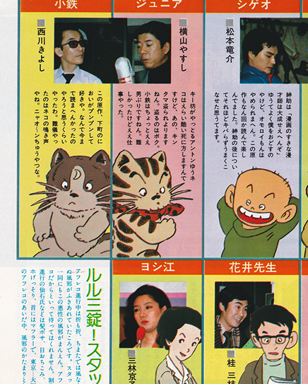 1: 富山県速星中学校、 富山県立富山工業高校 (疎開先です)。 2: 今と違って、 目立たなくて、試験前には何時間でも勉強する ようなまじめな少年でした。 それに内向的でね。 友だちが一人 もいなかったぐらいですから。今だってそういう性格なんです けどね (笑) 3: 得意な科目は漢文、 習字と美術、 苦手は社会、地理、 体育。 4: 新学期の思い出は、顔も知らない男がケンカしているところ を助けてやって、そいつと友だちになっちゃったことぐらいか な。でも、そいつとはずっとつきあってるから変なもんですね。 5: まんが家になりたかった。 6:だめでした。 絵をかいて、それを動かすおもしろさを知っち ゃったから、それほどまんがにあこがれなくなっちゃいました。 7: やっぱり、毎年がんばろうと思うだろうけど、勉強にしろ遊 びにしろ、ムダにならないよう、思いきりやってほしいです。 人がやるからじゃなくて、自分がしたいから、 を大切にね。