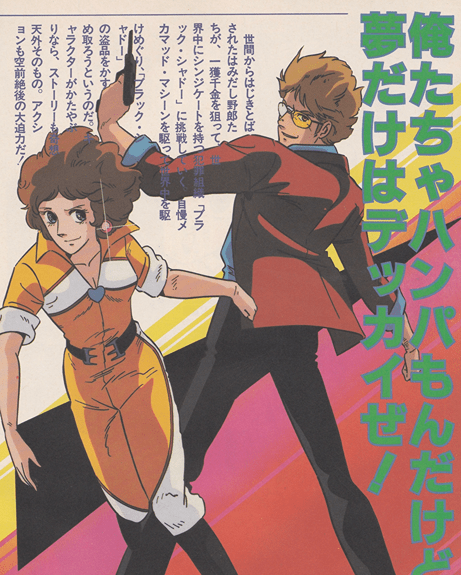 それに、アクションの各々の車を改造したマッド・マシーンでのカーアクションは迫力満点。さらに、巨大トラック・マッド1が「ブラック・シャドー」のくり出すメカ群を次々打ち破っていくシーンも見のがせない。それに、キャラクターも注目だ。とくに、登場する女の子たちがかわいい。「もともと僕は“美形キャラ”はダメなの」(作画監督・上條修氏)なんて言ってるのが信じられないほどすばらしい。思わず画面に向かって口笛をふきたくなるようなかわいらしさだ。