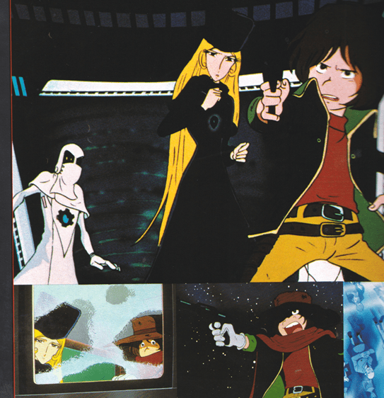 - Kazuko Nakamura: [杉山監督と席が隣どうしでキャラクターデザインを担当またオルガとレナの原画を担当しています「レナはハイソサエティの権力者の娘として生れたのですが、しかし超エリート階級の生活になじめず、純朴で、人間味たっぷりなゴドーに出会い、心ひかれ恋仲になるのですが、許婚のロックと結婚する女性なんです。主体性のない育ちのいい娘の感じを出すのに苦労してますね。反面、オルガは宇宙科学センターから送られてきた、宇宙ハンター育成用育児ロボット(ゴドーの育ての親)なので、人間的な反応は多少みせますが、感情面はまったくないので、動き、アクションが主体なので、描きや「すいですね」と中村さん手塚治虫さんが長い間描きつづけてきた、”女性像”をみごとに表現しています。そして話し終えた後、もくもくと仕事にとりかかっている中村さん、この道のベテランらしく手ぎよく、そしてあざやかな仕事ぶりに、次の声もかけられないほど?まあ、次のページに出てくる、オルガとレナの絵をみていただければ、これもすべてなっとくのいくことですゾ。]