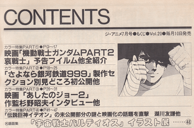 日本中のガンダムファンに届けら れる、ホットなメニュー! 日本サ ンライズに寄せられた、熱い要望に こたえ、いよいよ、サンライズファ ンクラブが発足することになりそう。 現在、〝哀戦士”公開にあわせ、発足 準備中とか。詳細は次号で!!