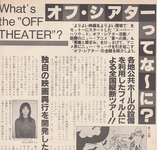 ●応募方法/希望の方はハガキに、住所、氏名、年齢、希望人数を明記の上、〒116 東京都港区西新橋2の7の4第20森ビル 近代映画社 ジ・アニメ編集部「白鳥の湖」試写会係までお寄せ下さい。(ハガキ1枚につき3名様まで御招待します)詳しい御案内は折返しハガキでご通知します。30組になり次第〆切りますので、お早目めに。遠くの方には負担をおかけしますので、東京近郊の方に限らせていただきます。