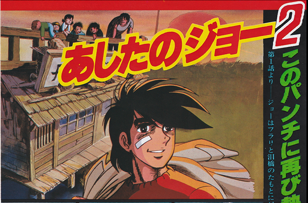 AM. 今回のストーリーは、力石を殺して しまったジョーが〝泪橋”へ帰ってき たところからはじまる。パート1の5 話「よみがえった狼」に相当する話だ。 とすると、まともに原作通り忠 実にやっていくと、カーロス戦 まで描いたパート1の2話分の 話が重複してしまうことになる のだが……