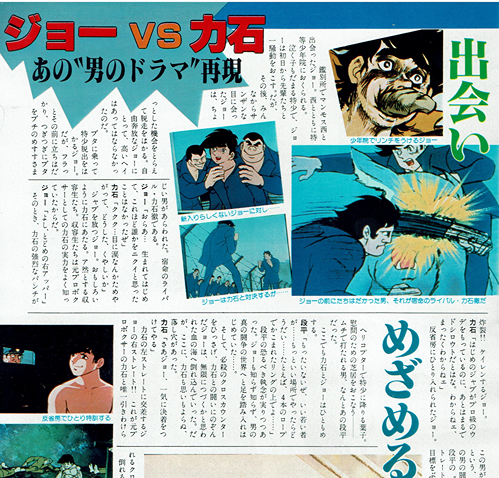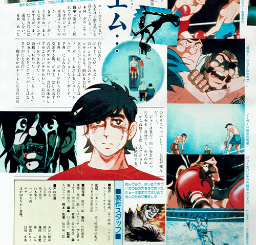 アニメのプロデュースははじめ てだったが、アニメだからと意識 したり大変だったということはな い。結局ドラマを作るということ だから。でも、再編にあたって感 じたことは、音が雑に作ってある ということ。テレビのサイクルで 作るからしょうがないといえばし ょうがないが、あれほどとは思わ なかった。音つけに、ふつうの劇 映画の倍かかりましたね。 内容的には、原作に忠実に作っ た。ムダな枝葉の部分を落とし幹 だけにしぼった。あそびがなく緊 張感のある2時間半になったと思 う。見れば、時間が短かく感じる。 ただ、葉子の話や西の人間性を あらわす部分など残したかったの ですが、時間の関係で泣いて切っ た。でも、話にふくらみがないか というとそうではなく、男のロマ ン、対立する友情などがみごとに 出ていると思う。試写会で梶原(一 騎)さんがオイオイ泣いてくれま して、成功したなと思っていま すよ。 セリフもかなり変わっています。 テレビのは劇場で見ているとハス ッパで軽い感じがすると思った。 再編だけど、まったくの新作だ と見てくれて結構です。製作費も 新作並みにかかっている。新たに 描きおこしたところ? そう、つ ながりでどうしても新しいところ も必要だった。だけど、よほどの ファンでも気づかないでしょうね。