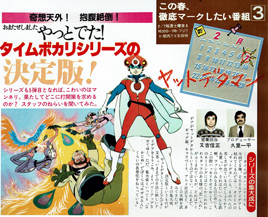 Ippei Kuri: 「いや、それはたいへんな誤解。ファンのみなさんのためにも、この際ハッキリさせておこう。このネーミングにはたしかにわれわれスタッフのある種の“思い入れ”がふくまれているが、それはアイデアがヤットデタからというのではない。これまで、ギャグ面、キャラづくり、アニメ技法など、多の実験を試みてきたがその集大成、決定版というものがヤットデタということなんです。」